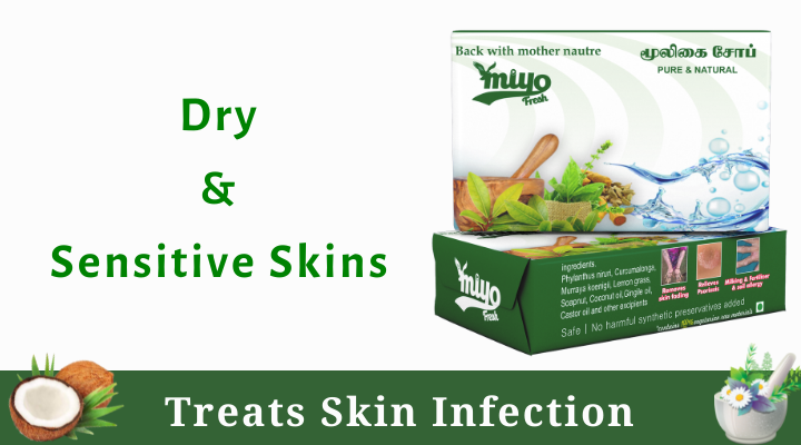 Recommended soaps: Complete skin care, Mooligai soap, Herbal Deep Cleansing powder